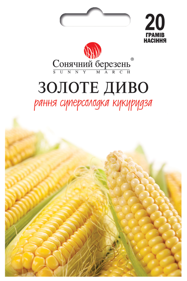Справжнє свято смаку на літній грядці. Ранній суперсолодкий сорт, який дозріває вже через 72 дні після посіву. Рослини середньої висоти (близько 180 см) формують рівні, майже циліндричні качани завдовжки 20–22 см, із 14–18 рядами щільно заповнених золотистих зерен. Зерно ніжне, солодке, з тонкою оболонкою й насиченим ароматом. “Золоте диво” ідеальне для свіжого споживання, консервування та заморожування, зберігаючи свій сонячний колір і кремову текстуру навіть після варіння. Цей сорт — немов частинка теплого серпня: медова солодкість, м’який смак і легкий аромат дитинства. “Золоте диво” дійсно виправдовує свою назву — кожен качан сяє, наче крапля сонця на твоєму столі.