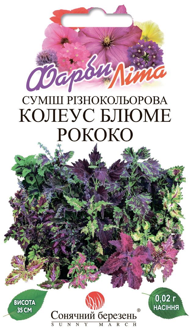 Рококо - ефектна суміш колеусів із розкішним мереживним листям і фантастичною палітрою відтінків, що перетворює посадки на живу декоративну інсталяцію. Химерно розсічені, хвилясті листки з контрастними поєднаннями зеленого, бордового, рожевого, кремового та пурпурового нагадують яскраві морські корали або екзотичні рослини з іншої планети. Рослини формують компактні, густо розгалужені кущики заввишки 25-35 см, ідеальні для горщиків, балконних ящиків, контейнерів і клумб. Суміш забезпечує різноманіття форм і кольорів в одній посадці, створюючи виразний декоративний ефект протягом усього сезону. Колеус швидко нарощує пишну декоративну масу й легко вирощується, дозволяючи без зусиль отримати яскравий, насичений кольором акцент у саду чи на терасі. Колеус «Рококо» рослинний феєрверк кольору й текстури, що виглядає водночас екзотично, витончено й абсолютно незабутньо.