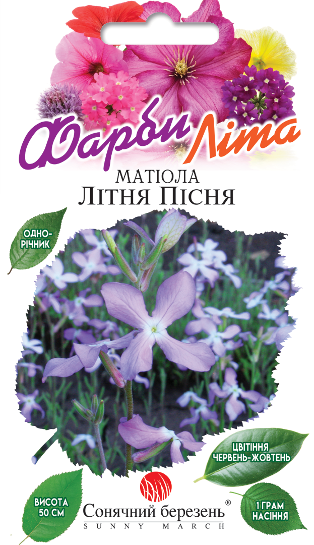 Однорічна рослина, висотою 40-50 см, сильногілляста від основи стебла. Квітки лілового кольору з дуже приємним сильним ароматом, зібрані в пухкі суцвіття. Період цвітіння тривалий і дуже рясніший. Цінується через свій аромат. Використовується у змішаних групах на газонах. Рослини холодостійкі, світлолюбні, досить невибагливі. Вирощують посівом насіння в ґрунт ранньою весною або під зиму. Є дуже красивою та невибагливою квіткою, яка видає дуже приємний аромат у нічний час доби. Підживлення має виконуватися лише мінеральними добривами. Щоб рослина не загинула в посушливу та спекотну погоду, її потрібно поливати. Характеристики: 1 грам
