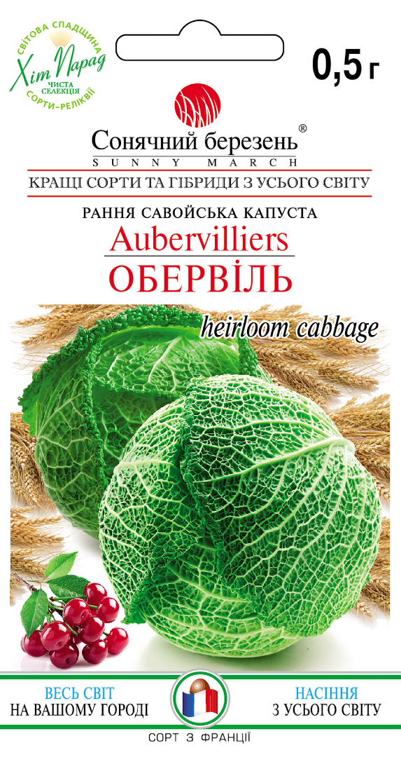Ця реліквія вирощується з 1800-х років на рівнині Обервіль (Aubervilliers) у Франції. Савойська капуста «Обервіль» - це старовинний скарб, який дає прекрасну голову капусти, міцну і важку, велику за розміром, з синьо-зеленим зовнішнім зморшкуватим листям і блідо-зеленою серцевиною. Cabbage Savoy Aubervilliers - дуже витривала рання капуста (80-90 днів), що вирощується з весни до пізньої осені. Савойська капуста є найніжнішою і найсолодшою з усіх видів капусти, з чудовим відмінним ароматом. М'яка текстура та ніжний аромат роблять савойю кращою капустою для використання у багатьох рецептах. Її можна використовувати на пару, в печені, у свіжих салатах або додати в супи або тушковані страви, але якщо ви хочете швидко поїсти... нічого дуже складного, вона чудова у сирому вигляді.