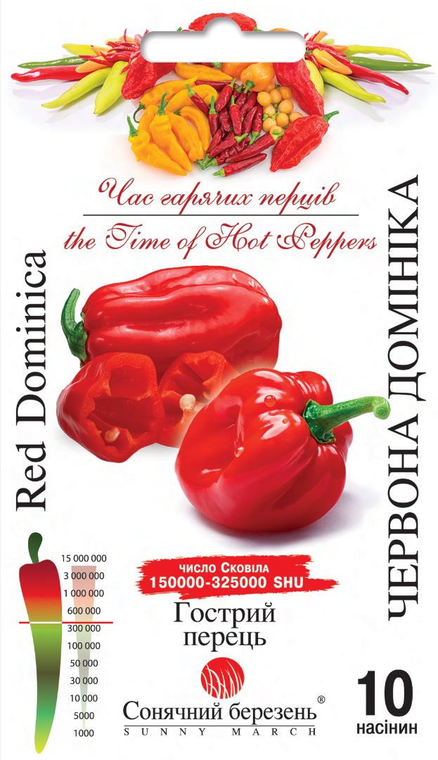 Червона Домініка – це великий Habanero. У нього досить товсті стінки плодів із фантастичним димним солодко-фруктовим ароматом. Це один із найкращих за смаком Habaneros. Хабанеро – один із найгарячіших і найвідоміших перців чилі у світі, він приблизно в 50 разів гостріший, ніж Халапеньо. Плоди овальні, зморшкуваті, за формою схожі на міні-перець, виростають до 5 см завдовжки і до 3 см завширшки. Вони мають такий яскравий фруктовий смак, що багатьом іншим видам чилі дуже важко конкурувати з перцем Хабанеро. Цей ароматний перець використовується для приготування гарячих соусів та сальси, а також для сушіння та приготування їжі, незамінний у маринадах.