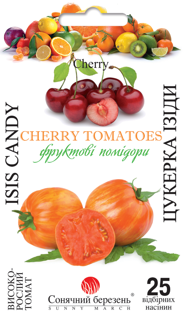 Ранньостиглий сорт виведений Джо Браткой, Нью-Джерсі, США. Прекрасні круглі плоди розміром один дюйм (2,5 см) можуть мати різні відтінки і візерунки від червоного до жовтого. М'якоть щільна і хрумка, зазвичай золотистого кольору з рожевими і червоними плямами. Багатий, солодкий, фруктовий смак, дуже інтенсивна насолода з нотками кислинки, звідси і назва «цукеркова». Міцна рослина з відмінним розвитком (понад 1,5 метра заввишки), добре облистяна. Ці улюблені «солодкі» ласощі як дітей, так і дорослих.