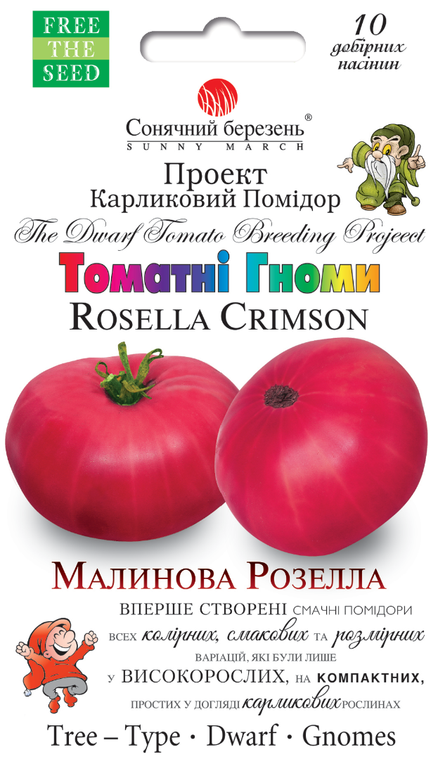 Вперше представлений у 2014 році. Походить від схрещування між Budai Torpe та Stump of the World, названий Sleepy F1. Цей гном не просто гарний помідор, у нього такий чудовий і видатний смак, який асоціюється зі смаком старих сортів, що наближається за якістю до Pink Brendiwine і схожий на Cherokee Purple. Дуже міцна рослина з товстим стеблом і великим звичайним гофрованим листям, висотою від 1 до 1,5 м, все обвішане численними плодами, які не перестають зав'язуватися протягом усього сезону. Займає мало місця, але плодоносить просто шалено! Помідори середньовеликі, вагою від 120 до 250 г, іноді до 450 г, різної форми, найчастіше плескаті, з ребристими і більш-менш пухкими плечима. Усередині плоди темно-червоні, і це у поєднанні з прозорою шкіркою надає їм малиново-рожевого кольору. Біфштексна щільна м'якоть з достатньою кількістю соку, щоб бути соковитими, але не рідкими. Смак збалансований, чудовий та насичений, з ідеальним балансом солодкого та терпкого. Сорт середньостиглий, близько 80 днів від пересадки.