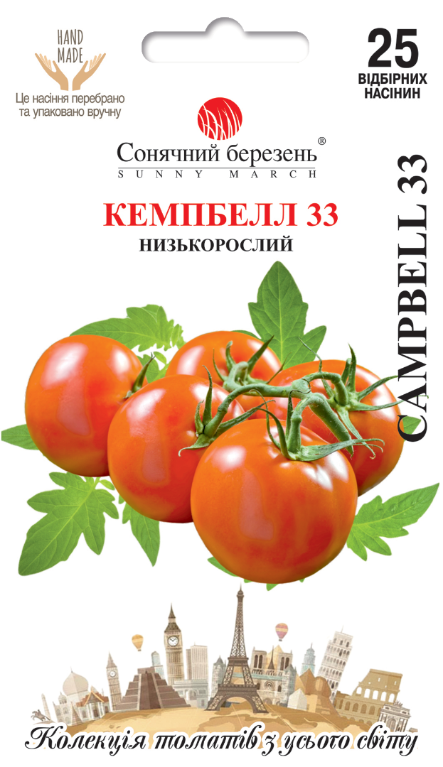 Високоврожайний ранньостиглий детермінантний сорт італійської селекції, спеціально адаптований до прохолодних умов вирощування. Надійно зав’язує плоди навіть за нестабільної погоди, забезпечуючи стабільний ранній урожай. Рослини компактні, низькорослі, заввишки 60-70 см, зазвичай не потребують пасинкування й зручні у догляді. Дозрівання настає через 70-80 днів після сходів. Плоди округлі, вирівняні, яскраво-червоні, масою 150-200 г. М’якоть щільна, м’ясиста, з класичним томатним смаком. Томати добре тримають форму, придатні для транспортування та переробки. Сорт відзначається стійкістю до фузаріозу та вертицильозу, що забезпечує стабільну продуктивність у різних умовах вирощування.