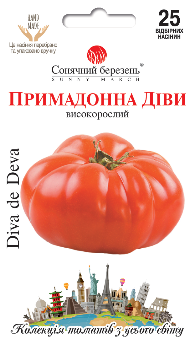Старовинний сорт, який вирощується на околицях Діви. Рослини високорослі, близько 1,8 метра, середньораннього дозрівання (110-120 днів). Помідори яскраво-червоні, плоскоокруглі, рівні, плечі сильно зморшкуваті. Плоди відносно однорідні за розміром кисті, вагою до 500 г. М'якоть малиново-червона, масляниста і малонасіннева, наповнена насиченим старим томатним смаком, дуже солодка та ароматна.