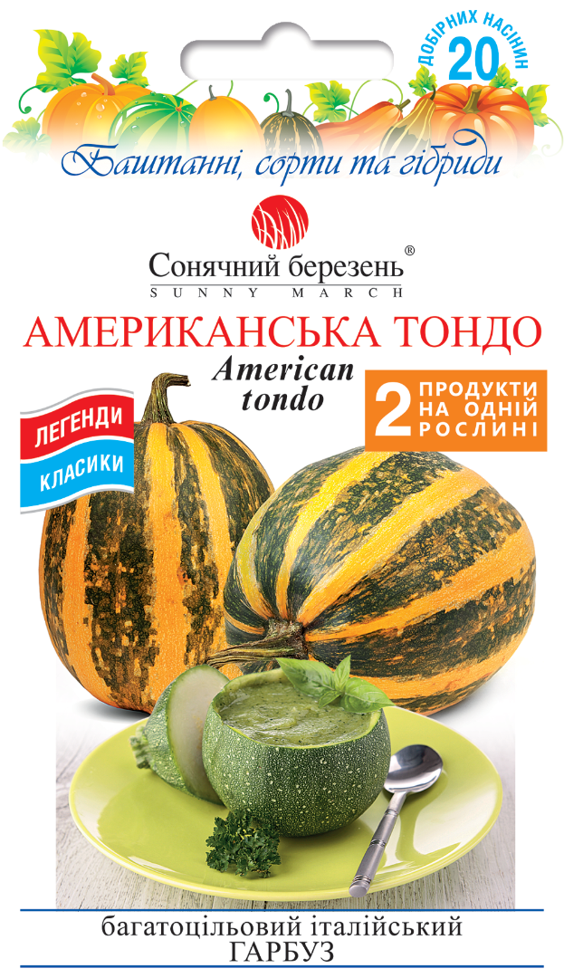 Чудовий, унікальний, багатоцільовий італійський гарбуз Tonda Padana (зимовий сквош). Його можна їсти молодим, як цукіні, або зрілим через 90-100 днів після сходів. Там, де він дійсно сяє – це осінні покази гарбузів та зимового сквошу. Овальний гарбуз із зеленою шкірою та широкими яскраво оранжевими ребрами вагою від 8 до 16 фунтів (4-8 кг). Чудово зберігається, не втрачаючи смакових якостей. Дивовижна суха, солодка м'якоть чудова для приготування пирогів, супів, каш та хліба.